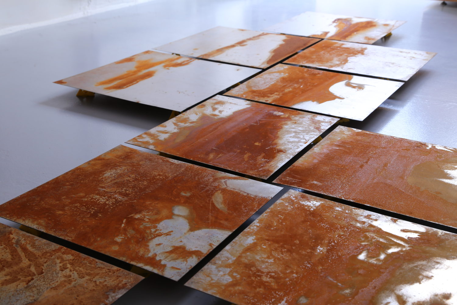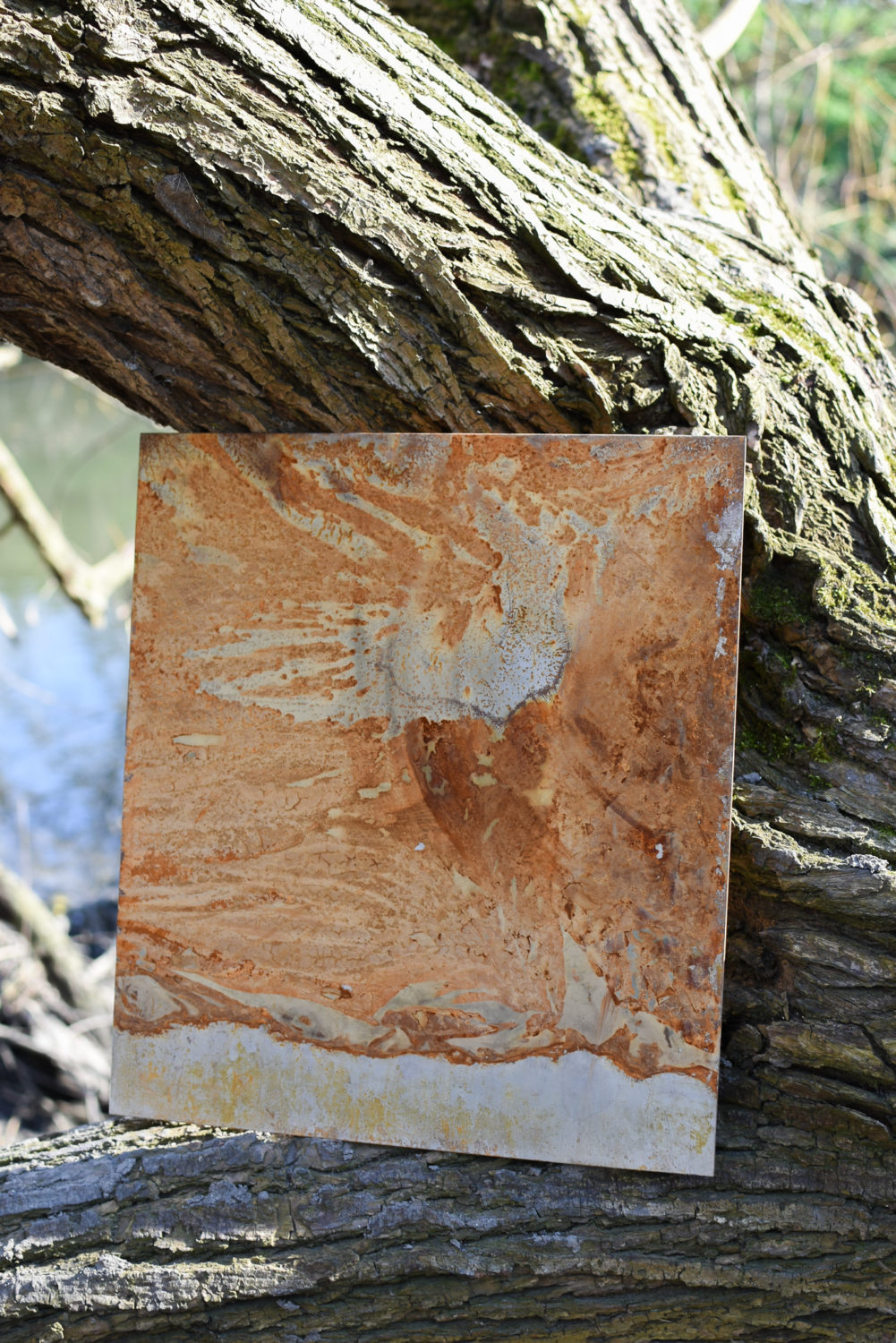 The Lea Variations were conducted over durations from 24 to 160 hours, between 30.12.2021 and 08.04.2022. They comprise twelve plates - one of which was swept away by the river during a flash storm - and two barrels.